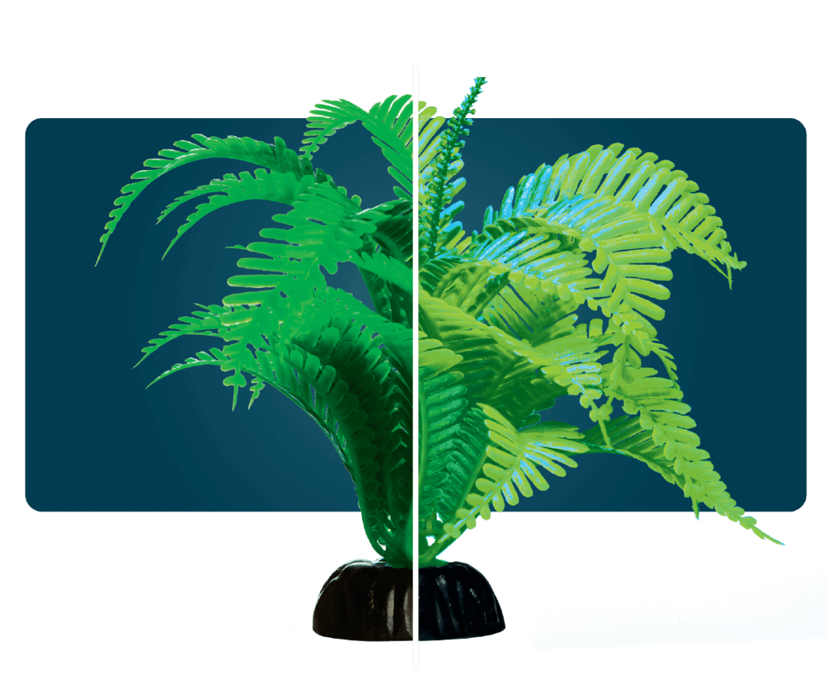 Esta decoración de aspecto natural brilla bajo ciertas luces LED, agregándole dimensión a tu acuario.
