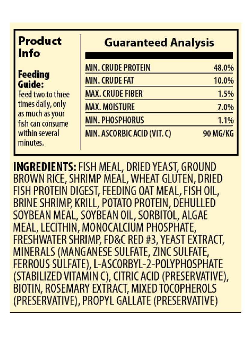 - Combinación especializada de hojuelas rojas y delgadas, y camarones secos.
