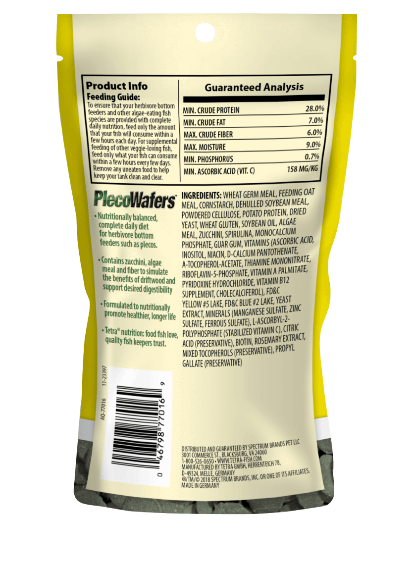 - Las Obleas TetraMin® para Plecos son una excelente forma de ofrecer a tus peces una variedad de vegetales, y la fórmula patentada ProCare, que mejora la salud.
