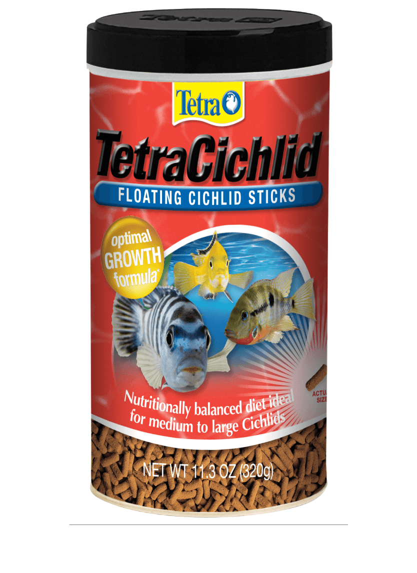 TetraCichlid™ Palitos para Cíclidos provee a los cíclidos que se alimentan en el centro y superficie del agua con la dieta abundante y los requisitos nutricionales que necesitan.