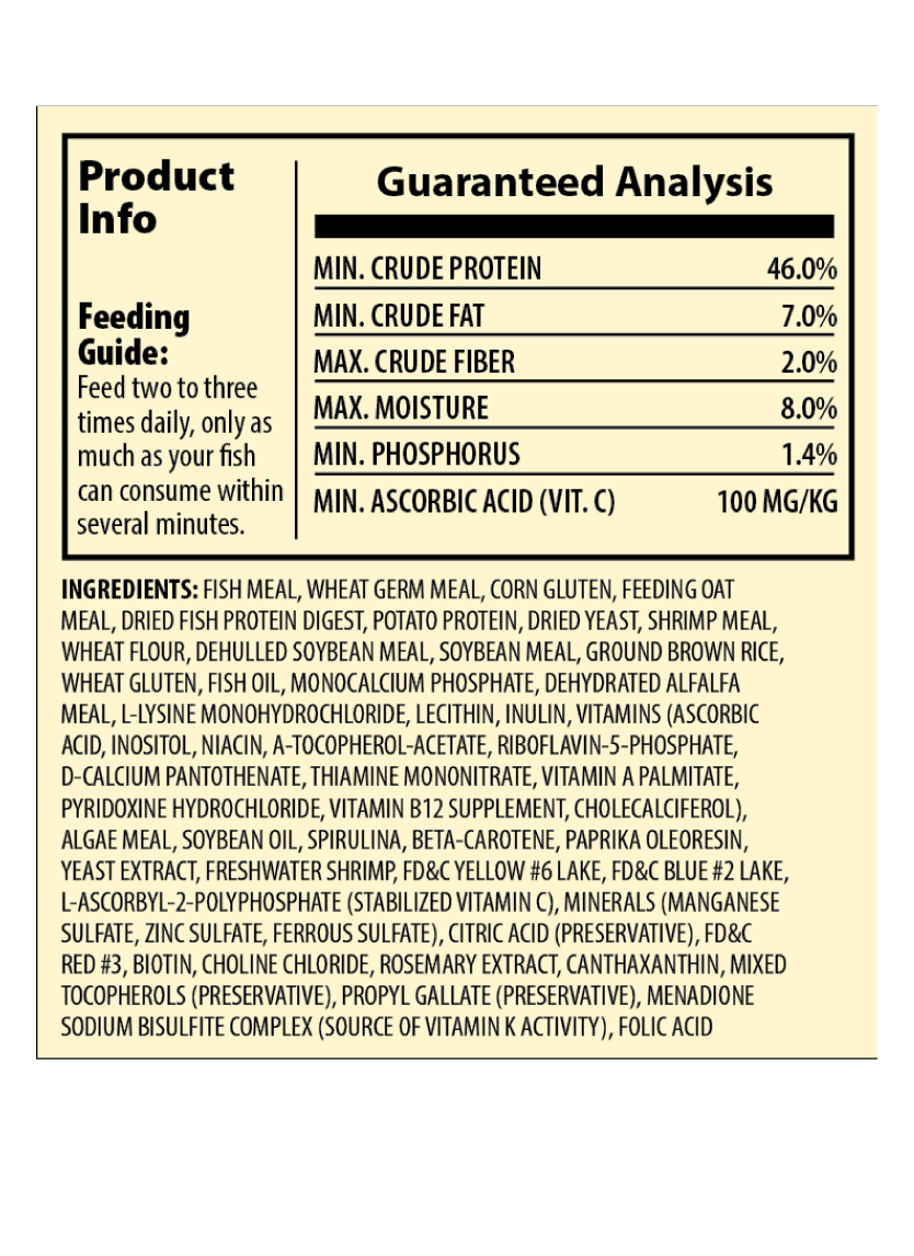 Alimente de 2 a 3 veces al día lo que sus peces puedan consumir durante 2 minutos.Tamaños